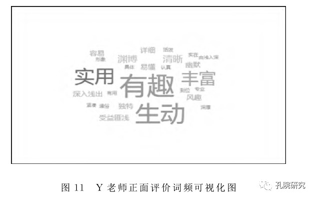 对Y老师所有正面评价词语进行词频统计,可以发现Y老师及其课程的特征是:有趣、生动、实用、丰富、清晰、渊博、深入浅出、易懂、独特,学员的反馈是受益匪浅。其中最突出的四个特征是:有趣、生动、实用、丰富。